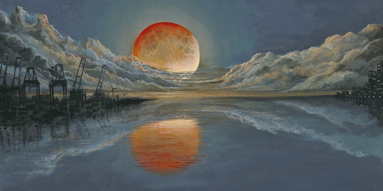 Hafenmond - 80 x 44 cm, Holzplatte, Acryl (153)